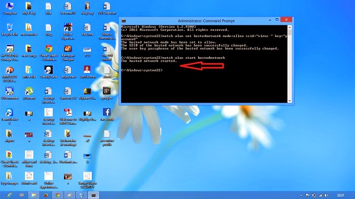 netsh wlan set hostednetwork mode=allow ssid="virus " key="password"